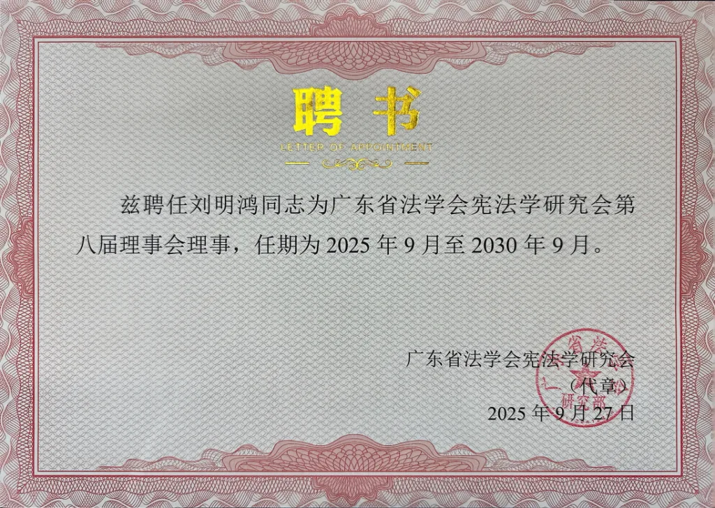 During this session, the 8th Council of the association was officially elected. Mr. Minghong Liu, Executive Director and Senior Partner of Neo-Ark Law Firm, was honorably appointed as a Council Member of the 8th Council of the Constitutional Law Research Association of the Guangdong Law Society.